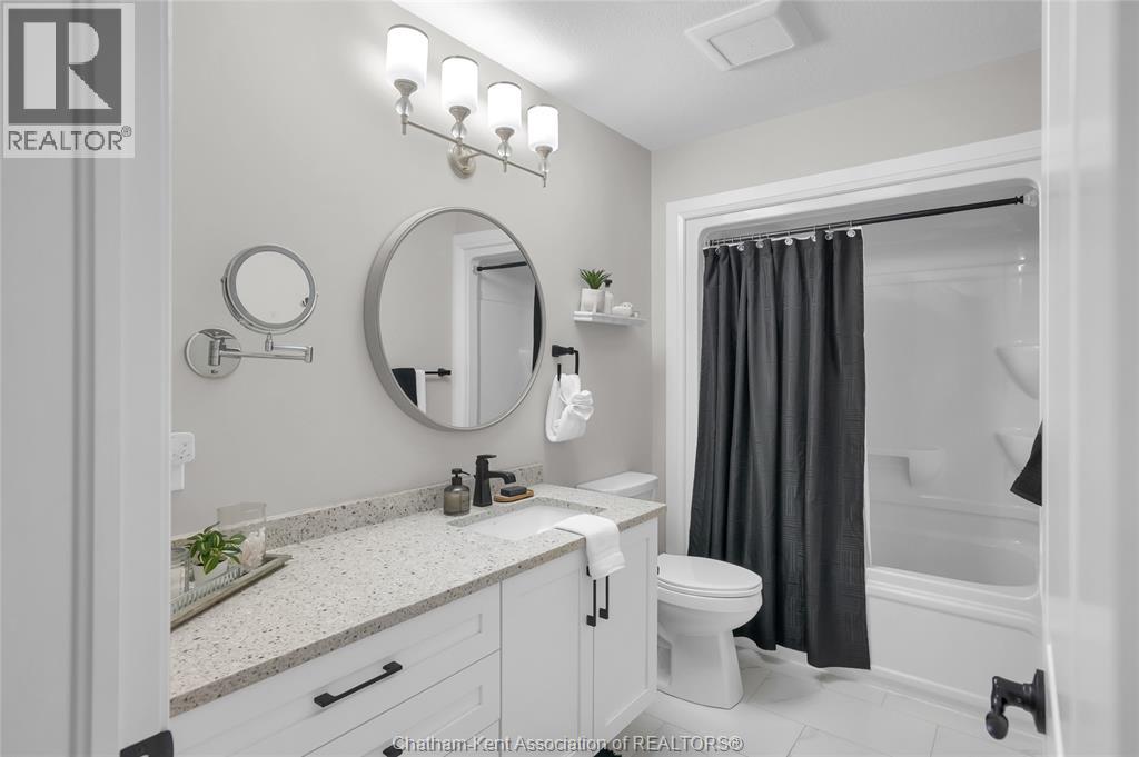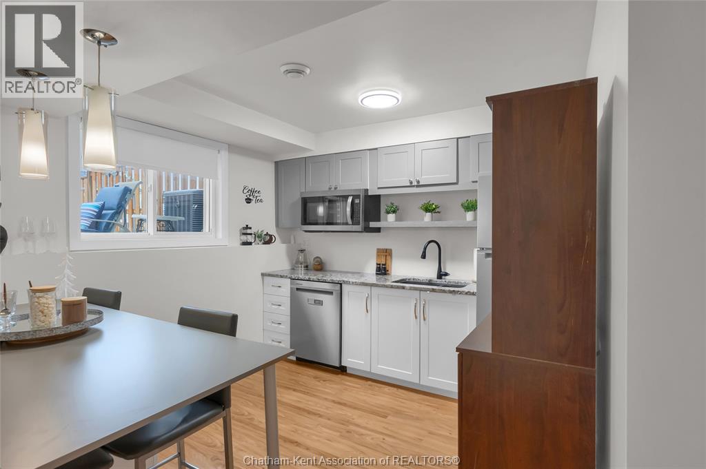 Elegantly designed and impeccably maintained, this 3 year old semi-detached home offers refined, modern living with exceptional versatility and income potential. The main level showcases open concept living with a bright kitchen with granite countertops, ample cabinetry and seating at the peninsula making it the perfect space for both everyday living and entertaining. Quality craftsmanship and attention to detail are evident throughout. The upper level offers 2 inviting bedrooms, a beautifully appointed bathroom and hardwood flooring. The opportunities are endless in the inviting, fully finished lower level that has been thoughtfully designed with comfort and functionality in mind. A grade entrance, along with insulated walls and ceilings, offers the perfect balance of privacy and additional living space. This charming area feels like it's own retreat and is ideal for multi-generational living, a private guest suite, or income potential. The kitchenette has a service window making entertaining outdoors a breeze, along with a BBQ gas line for added convenience. Prefer a second stove? The dishwasher could easily be converted to a stove as an electrical outlet is already in place. Finished with durable luxury vinyl plank flooring, plus an additional bedroom and full bathroom. With over 1900 sq ft of finished living space, this home is the perfect blend of comfort and elegance. Stepping outside you'll enjoy the fully fenced 135' deep yard where privacy and outdoor living come together beautifully. The spacious patio makes the perfect place for both entertaining and relaxing. This home is in an ideal location within walking distance to all amenities including parks, schools and shopping. Being only minutes to the 401 makes for an easy commute to both Windsor and Chatham. Whether you are entering the market, looking to downsize or somewhere in between, this home is sure to please! (id:4069)